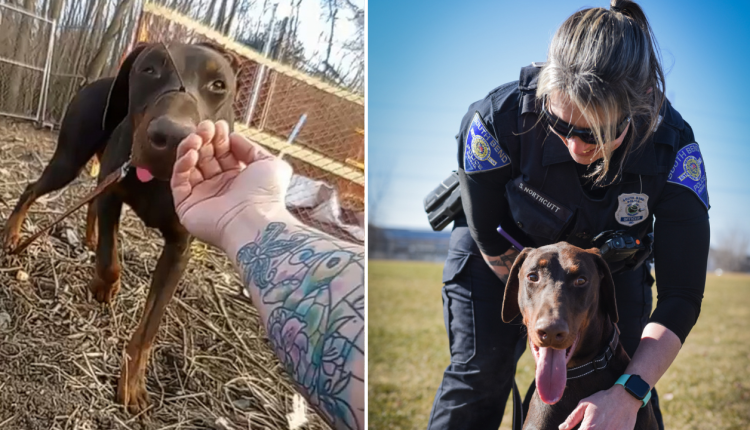 A police officer recently rescued a Doberman pinscher that was found with his snout zip-tied shut – and now, that same officer has welcomed the dog into her own family.