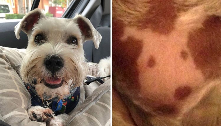 After Dickson found an unusual spotting on Murph’s fur coat, she took him to the groomer.