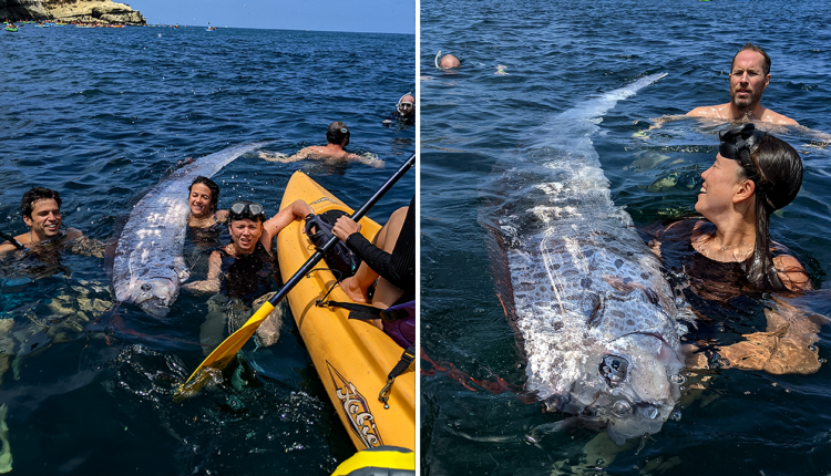 While kayaking and snorkeling in La Jolla, California, a group spotted a very rare deep-sea fish that had died.