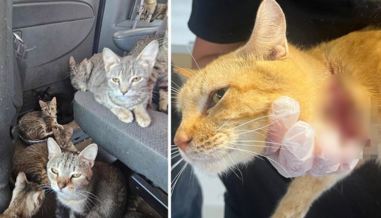 Some of the cats had serious injuries and illnesses, the organization said. Two of the cats had deep neck wounds because something had been wrapped tightly around their necks.