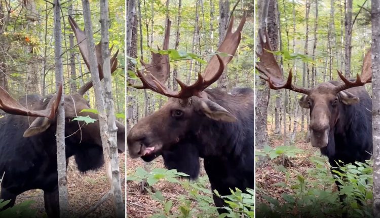 A man near Allagash, Maine, had a brush with death last month when he encountered a massive bull moose that stared him down before charging at him — and it was all caught on camera.