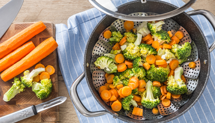 This Steamer Basket Stainless Steel Vegetable Steamer offers another simple steaming solution. The foldable steamer basket can steam veggies, seafood, eggs, meats, desserts, baby food and much more. Just insert it into your pot with water and go!