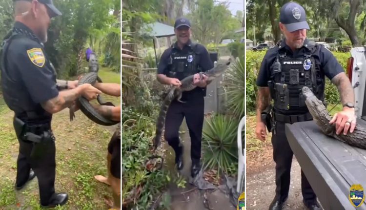 Officials with the Jacksonville Sheriff’s Office posted the video of the incident on Facebook after two officers received a call asking for a nuisance alligator to be removed from the resident’s property.