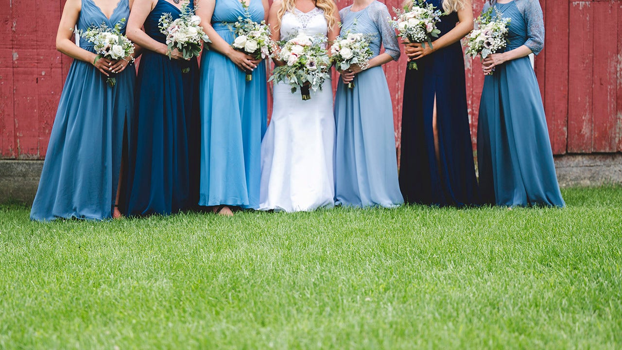 Many brides opt to have all of their bridesmaids wear either the same color but in different dress styles, or to wear dresses that coordinate but are not the same color or style, the website noted.