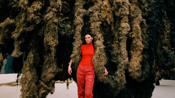 Strange forms have taken root in Berlin’s Hamburger Bahnhof. In the contemporary art museum’s vast hall, monumental hanging “tapestries” loom like a forest from a distant planet. Their organic, shaggy appearance falls somewhere between mossy undergrowth and matted animal fur. Long tendrils unfurl across the floor in near-monstrous fashion.