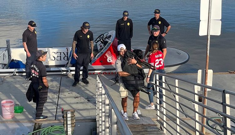 “Until a miracle happened,” the Fire Department said in a social media post. “Jet Ski 2 spotted the dog about a half-mile offshore near South Mission Beach.”