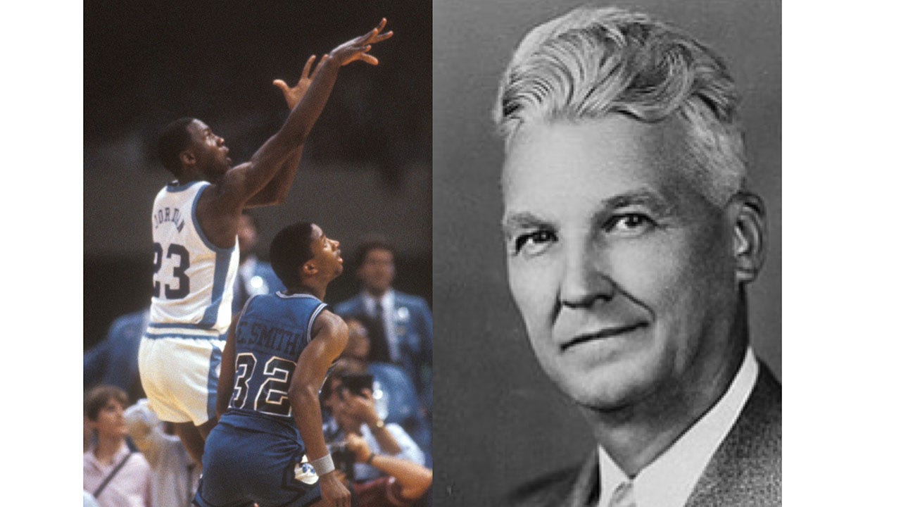 The tourney ended that year when an unknown 19-year-old University of North Carolina freshman hit the winning shot in the championship game against Georgetown.