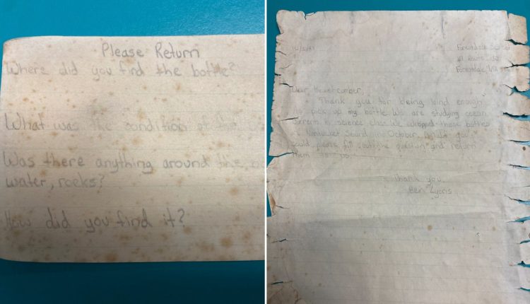 He explained that his class was studying currents and dropped the bottles in Nantucket Sound — hoping that whoever found it could answer a few questions.
