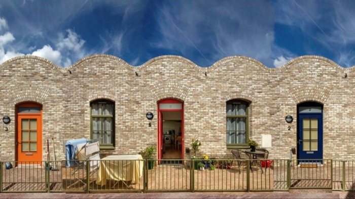 Once occupied by a run of dilapidated garages, the site in Barking, east London where Peter Barber was tasked with designing 16 houses in 2019 was exceptionally narrow. The most obvious solution for these homes for the over-sixties was to stack them over multiple storeys. Barber, however, had been reading about isolation among older people and persuaded his client to back a more radical strategy.