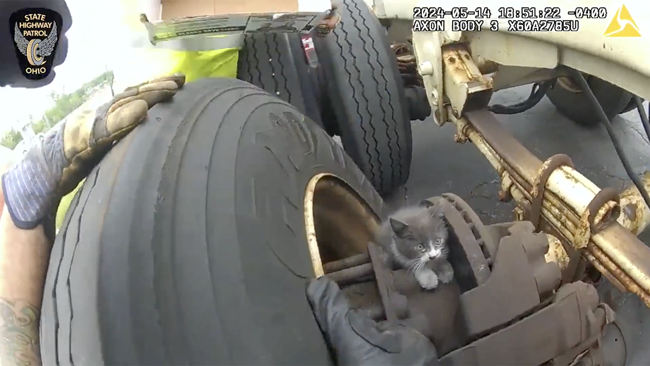 Ohio kitten trapped in semi-truck's wheel well: See the 'Mission Im-paw-sible' rescue video