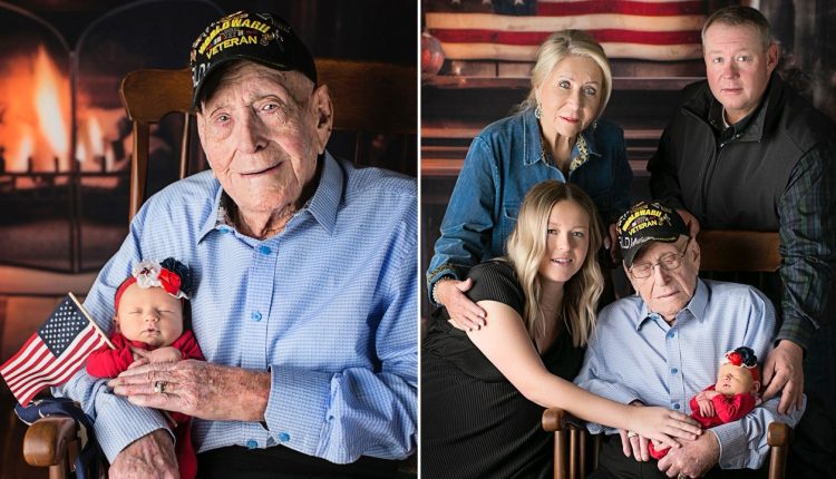 Fowler and her husband, Hunter, had scheduled a newborn photo session when their photographer suggested including Muirhead, a veteran of the Army Air Corps. He served during WWII and lives in nearby Wewoka, Oklahoma.