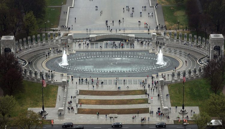 The memorial also features a granite column for each state and U.S. territory that was part of the United States during World War II, as well as an “impressive pool with water shooting high in the air,” that site continues.