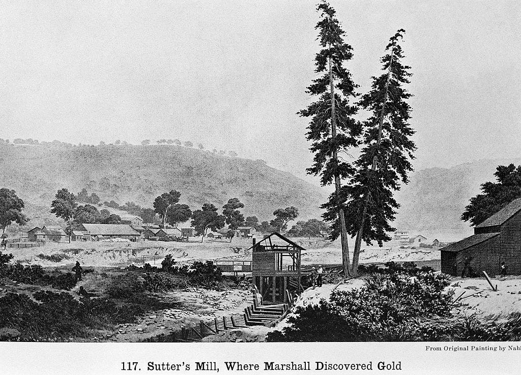 Gold was discovered at Sutter’s Mill, between Sacramento and Lake Tahoe in northern California, on Jan. 24, 1848.