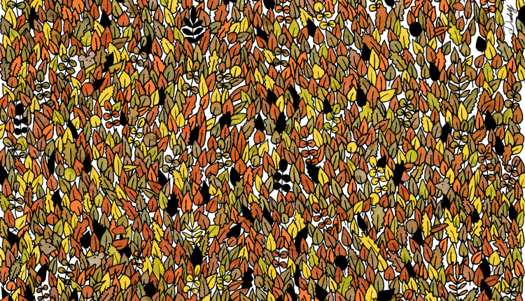 A graphic artist, Gergely Dudás of Dresden, Germany, shared a new visual puzzle with Fox News Digital that features four mice and five mushrooms hidden among an array of fall foliage.