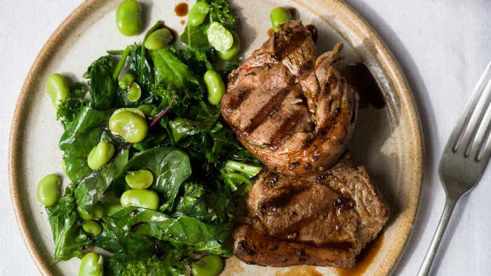 I once travelled to Sicily with Ben Tish, the chef-director of the Cubitt House group, and his wife Nykeeta for an FT travel piece. He treated us to this dish of grilled lamb, seasonal greens and fresh broad beans, which I’ve wanted to eat again ever since. The base ingredients are typical of Sicilian country cooking (and are in season now in Britain), while the aromatic, smoky, sweet-sour sauce reflects the culinary influence of the Moors, who ruled the island in the Middle Ages.