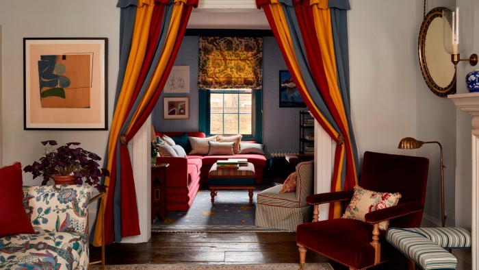The return of the curtain mirrors the shift to tactile, textured interiors. But perhaps there is more to it. In fractious times, a fabric-lined retreat has added appeal. It is the grown-up equivalent of a childhood den. Fabric designer Tori Murphy recalls her grandparents’ drape-strewn home in Ireland. “The curtains were an authentic solution to everyday life, used to keep in the heat from fires,” she says. But they also brought a sense of “envelopment”, turning ordinary rooms into “something theatrical — and exciting”.