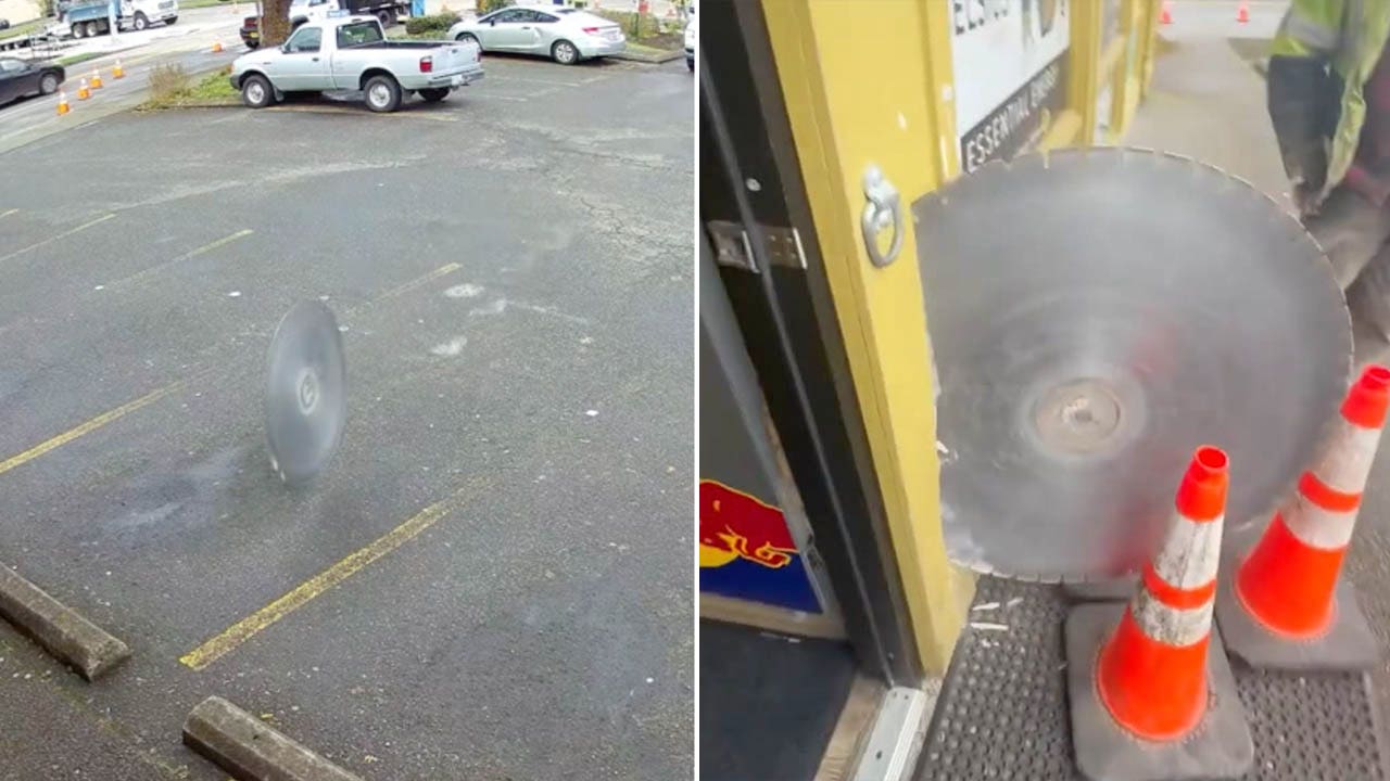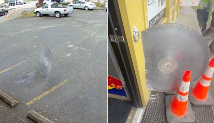 Shocking footage shows Oregon man barely missing runaway saw blade that got loose from construction site