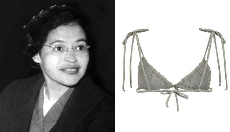 Divinoseas, a clothing label based in Miami, Florida, listed the two-piece bikini along with a description that says the piece was “inspired by the woman whose righteous rebellion against apartheid style segregation in the United States sparked the civil rights movement of the 1960s.” The description also mentions Parks’ name.