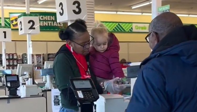 Store employee holds fussy toddler during checkout to help ease major meltdown, mom sings her praises