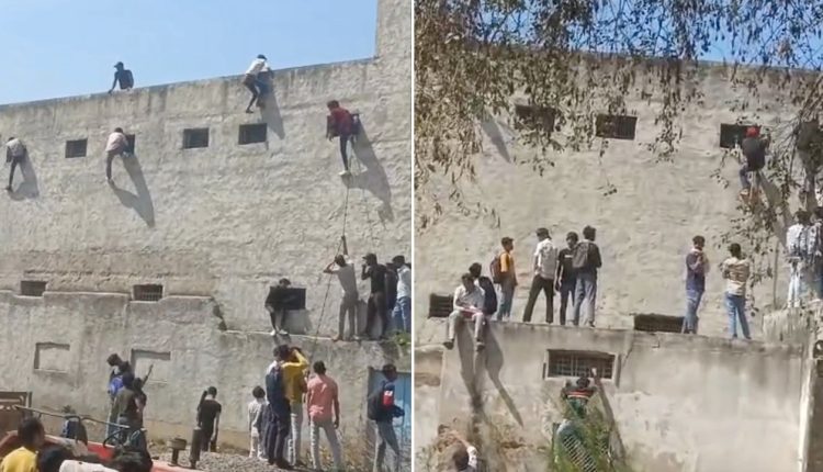 Students in India caught grabbing exam ‘cheat sheets’ from those who scaled school’s walls