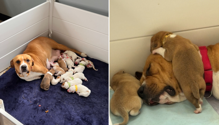 A Texas rescue dog whose dire pregnancy rendered her immobile ended up giving birth to nearly a dozen healthy and happy puppies.