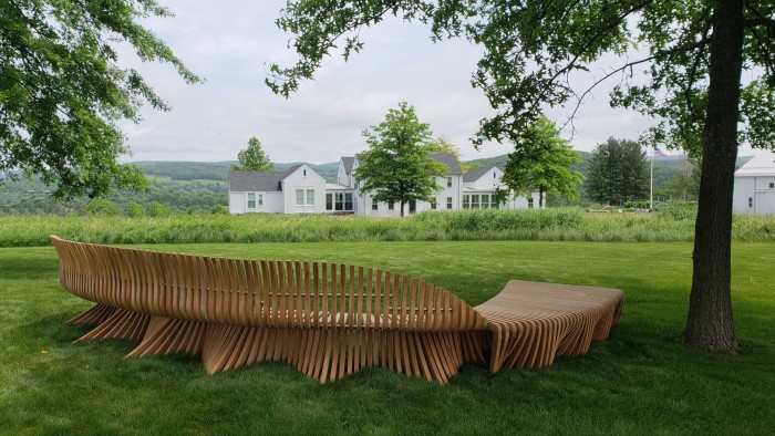 Like many designers, Erlam, who frequently works in collaboration with architectural firms including Johnson Naylor and Thomas Heatherwick, also commissions furniture when the setting demands it. “It’s a very special journey to work with a maker who is passionate about what they do, especially if we are creating bespoke pieces from trees that have been taken down on the site,” she says. “It’s a lovely story for the clients to tell, about a circular economy, valuing the trees.” She has recently commissioned a bench from a fallen cedar tree that was hand-carved in situ in a Hampstead garden by Joel De Mowbray, founder of studio Yes Make.