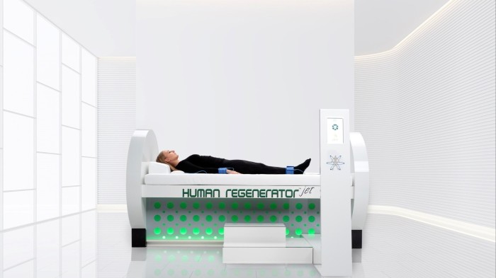 Jovita Martinkenaite has been distributing the machine for the past four years, and says around 30 per cent of her business now is individuals like Shepherd, rather than clinics. “At the beginning, I wasn’t expecting private customers to be that interested, because it’s a large piece of equipment and you need a separate room,” she says. Buyers can customise the unit to better match their decor — she’s even produced a bespoke, extra-long bed for a retired NBA basketball player.