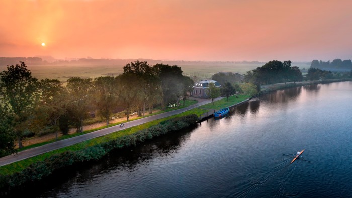 Meander down the Amstel river from the concertina of canal houses and bicycle-crowded streets of central Amsterdam and in less than half an hour you’re in the wide pastures of the Duivendrechtse Polder. Sheep graze quietly as they have since the 17th century, swallows swoop overhead and the odd tractor sputters along the single lane that runs by the riverbank. The modern world is glimpsed only at the fringes: cars scuttle like matchbox toys around the ring road, beneath the imposing outline of the Ajax football team’s stadium.