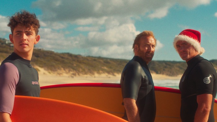 That said, The Surfer is a highly original piece that works on its own increasingly crazed terms. Cage plays an unnamed man (identified in credits only as “the Surfer”) who returns to the Australian coastal community of his childhood, where he is determined to buy a clifftop house. He also wants to introduce his teenage son to the glories of the surf there, but they run into a bunch of local males who won’t let them near the shore, snarling: “Don’t live here — don’t surf here.”