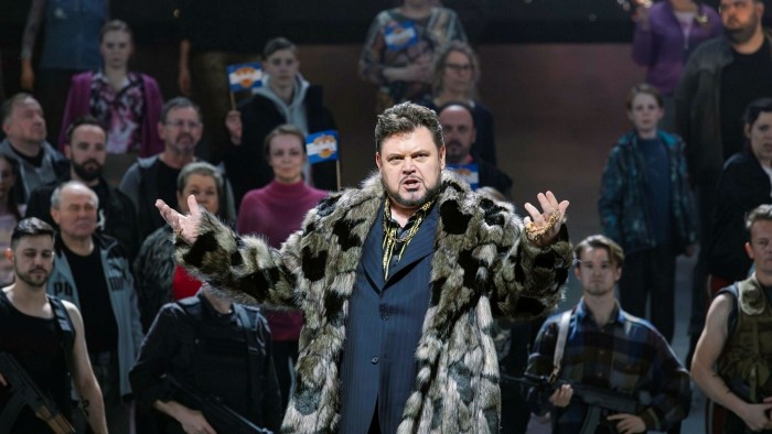 The drama hinges on the power struggle between three vying factions seeking to take control of Russia: Peter the Great (who wants to westernise the country), the Old Believers (who favour tradition and reject modernising reforms in the Orthodox church), and Khovansky (an autocrat who wants to take Russia for himself and his family). If that triangulation sounds familiar, that’s because it is. The curtain, covered in golden emblems with the word “Rossiya” printed all over it, rises to reveal bloody corpses across the stage, a scene painfully familiar since Russia’s full-scale invasion of Ukraine. When Khovansky announces that he will “make Russia great again”, or when his head goon appears, topless and wearing a hat of horns that make him look suspiciously like the “QAnon shaman” who stormed the Capitol in Washington on January 6 2021, the audience nods.