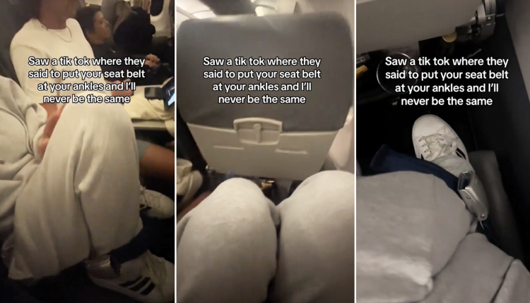 One TikTok user posted a video on Feb. 2 as she tried out the trend with the caption, “To whoever it was that said to put the plane belt around your ankles … I owe you my life!!!!”