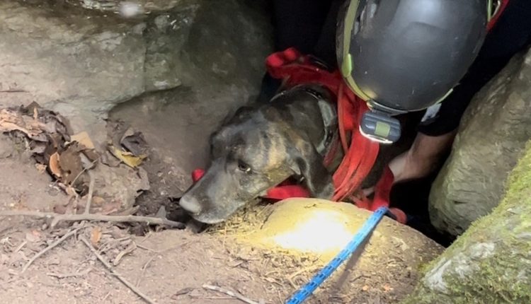 Waldens Creek Volunteer Fire Department said a joint Sevier County Technical Rope Rescue Team was called on Tuesday morning to help rescue Charlie, a hunting dog, who was stuck in a 40 feet deep down a narrow cave shaft.