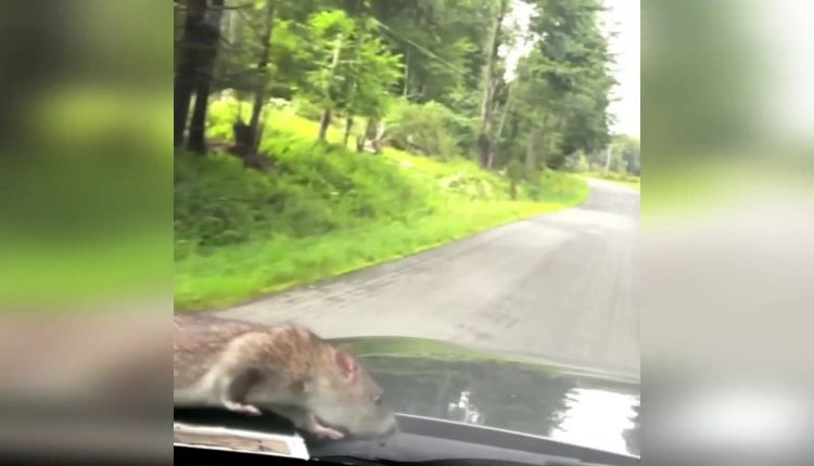 In the video, the hood riding rat is seen scampering up the hood of Coop’s car before burying itself between the car’s window shield.