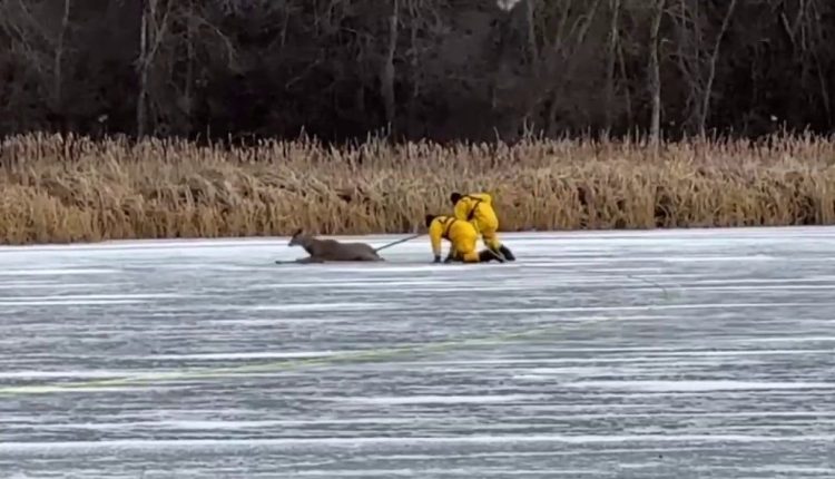 Watch: Michigan firefighters make daring rescue on thin ice to retrieve stranded deer