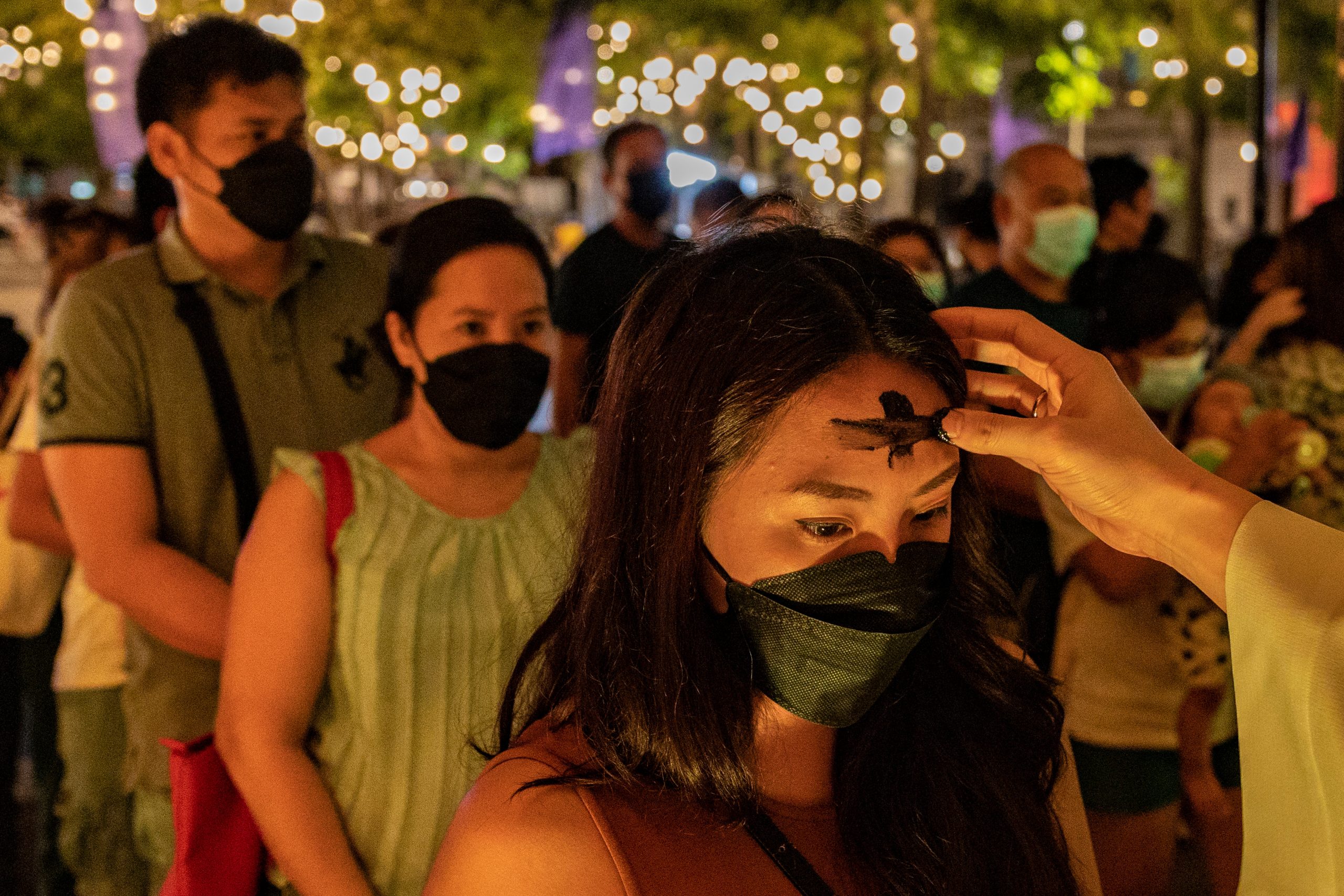 During the Ash Wednesday service, a priest or minister applies the ashes to the foreheads of believers in the shape of a cross. The use of ashes symbolizes humility, penance and a reminder of human mortality.
