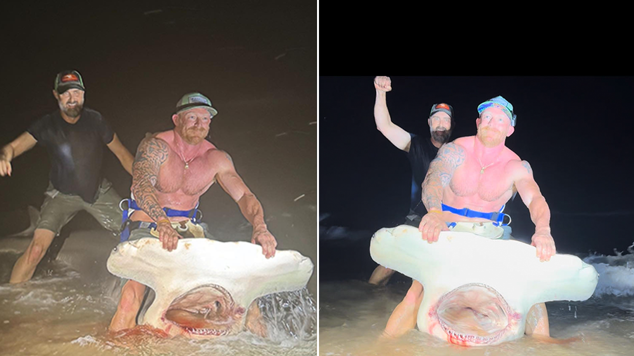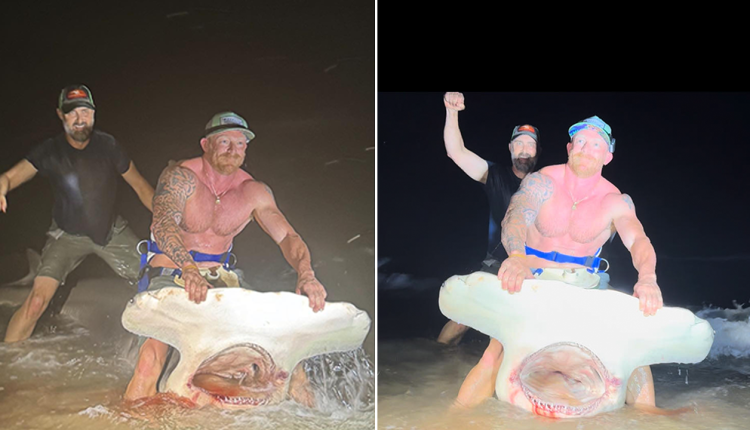 “We did not tag this shark because hammerheads are very fragile getting a solid healthy release was our main goal. I got really lucky and a group of four guys helped me land and release her. I owe it to them as she was too large for me to handle on my own,” he said.