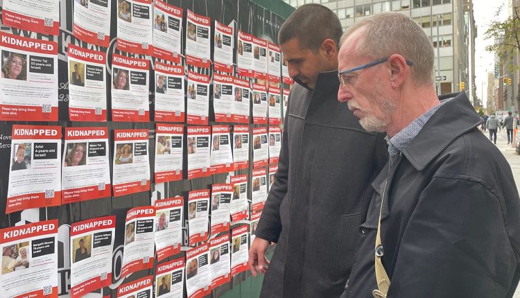 “They’re not winning the hearts and minds of people by showing their inhumanity,” said eyewitness Shalem, after picking up the vandalized kidnap victim posters off the Manhattan sidewalk.