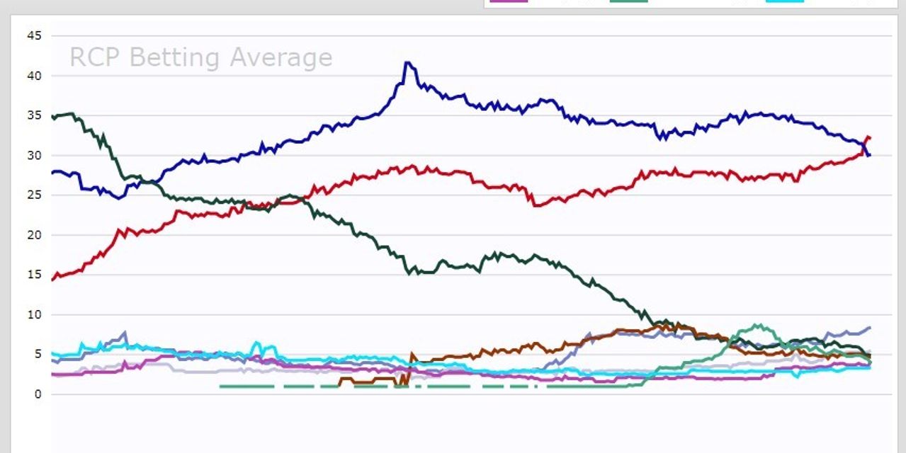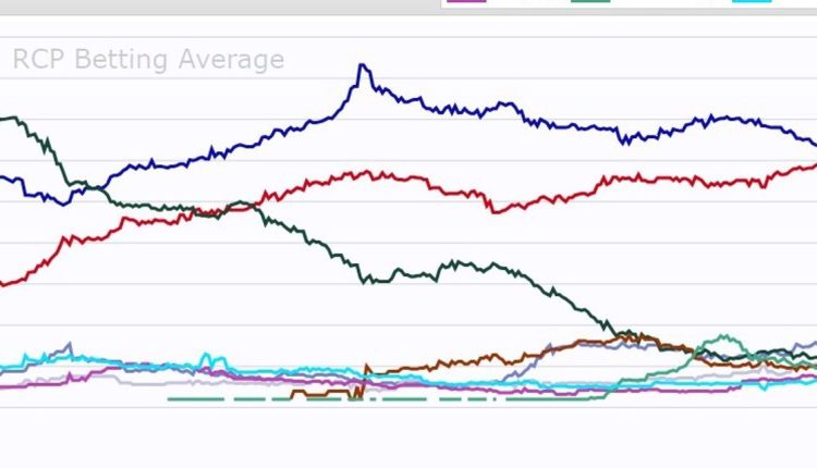 Donald Trump’s chances of winning the 2024 presidential election appear to be improving this week, as betting markets tracked by RealClearPolitics put them just ahead of President Joe Biden’s for the first time this year — at 32%, compared with 30%.