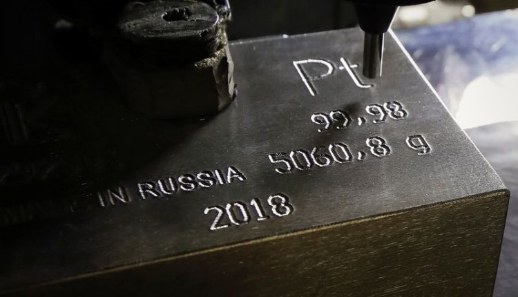 © Reuters. An employee holds an ingot of 99.98 percent pure platinum in a workroom during production at Krastsvetmet precious metals plant in the Siberian city of Krasnoyarsk, Russia, January 31, 2023. REUTERS/Alexander Manzyuk/File Photo