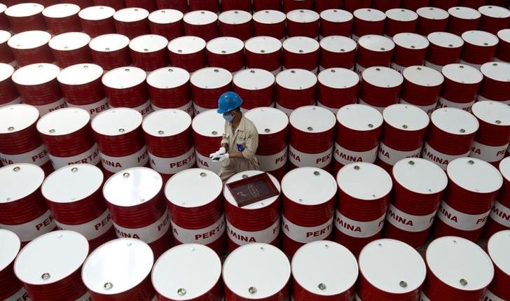 NEW YORK (Reuters) – Oil prices edged lower in early Asian trading on Wednesday, as a stronger dollar curbed investor appetite while traders took some money off the table after benchmarks rallied to multi-month highs in each of the past two sessions.