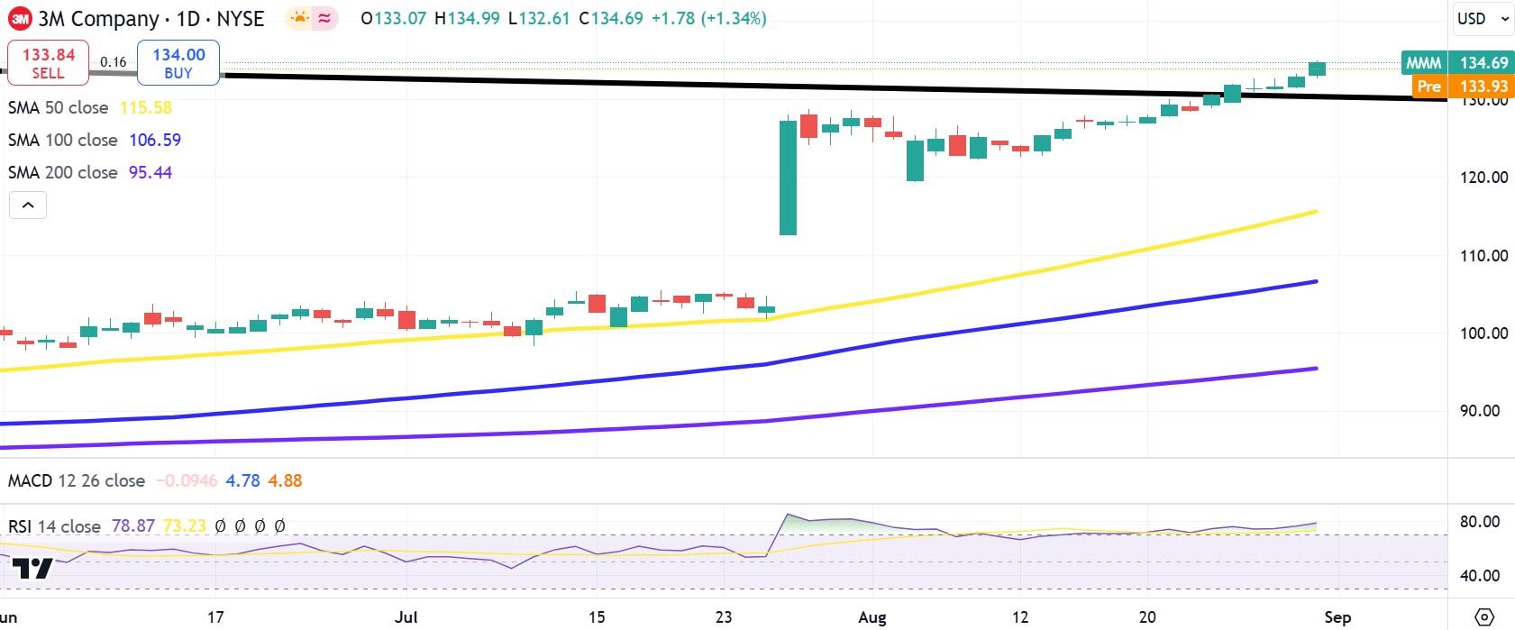 MMM daily stock chart