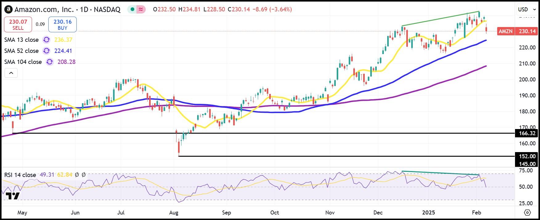 - Amazon stock trails 2% lower on Friday after Q4 beat.