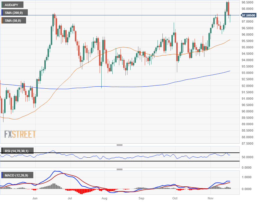 The AUD/JPY snuck over the 97.50 level just ahead of the Friday closing bell, trying to claw back some of the midweek’s losses after the pair tumbled from a Wednesday peak of 98.66.