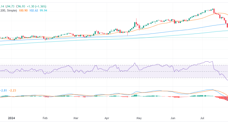 Technical indicators are improving. The Relative Strength Index (RSI) is rising and recently crossed above the oversold threshold, indicating a gain in momentum. Meanwhile, the Moving Average Convergence Divergence (MACD) is decreasing red bars below its neutral line but is losing momentum, suggesting a potential loss in bearish momentum.