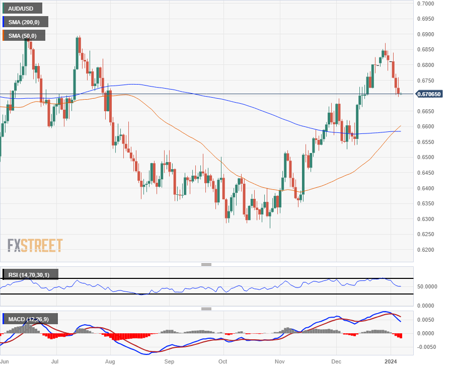 The AUD/USD continued to backslide on Thursday, slipping back into the 0.6700 handle after a short-lived rally sparked by improving risk sentiment on the back of a better-than-expected print in China’s Caixin Services Purchasing Managers’ Index (PMI) for December.