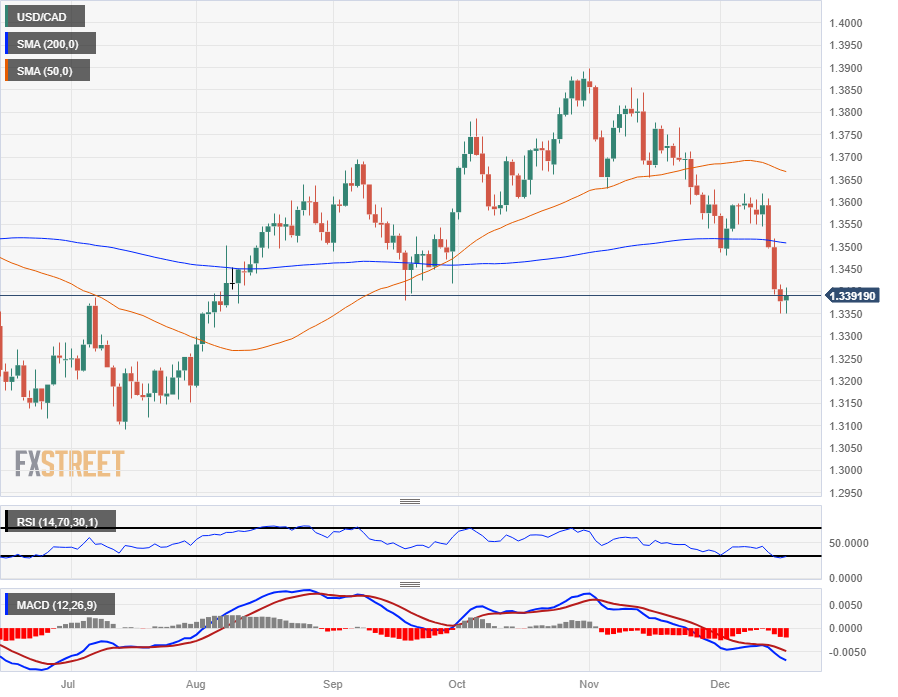 Monday sees the Canadian Dollar pulling back into 1.3400 against the US Dollar in a slight paring back from recent bullish momentum. The Canadian Dollar’s three-day bull run last week saw the USD/CAD tip into multi-month lows near 1.3350 after falling from last week’s highs near the 1.3600 handle.