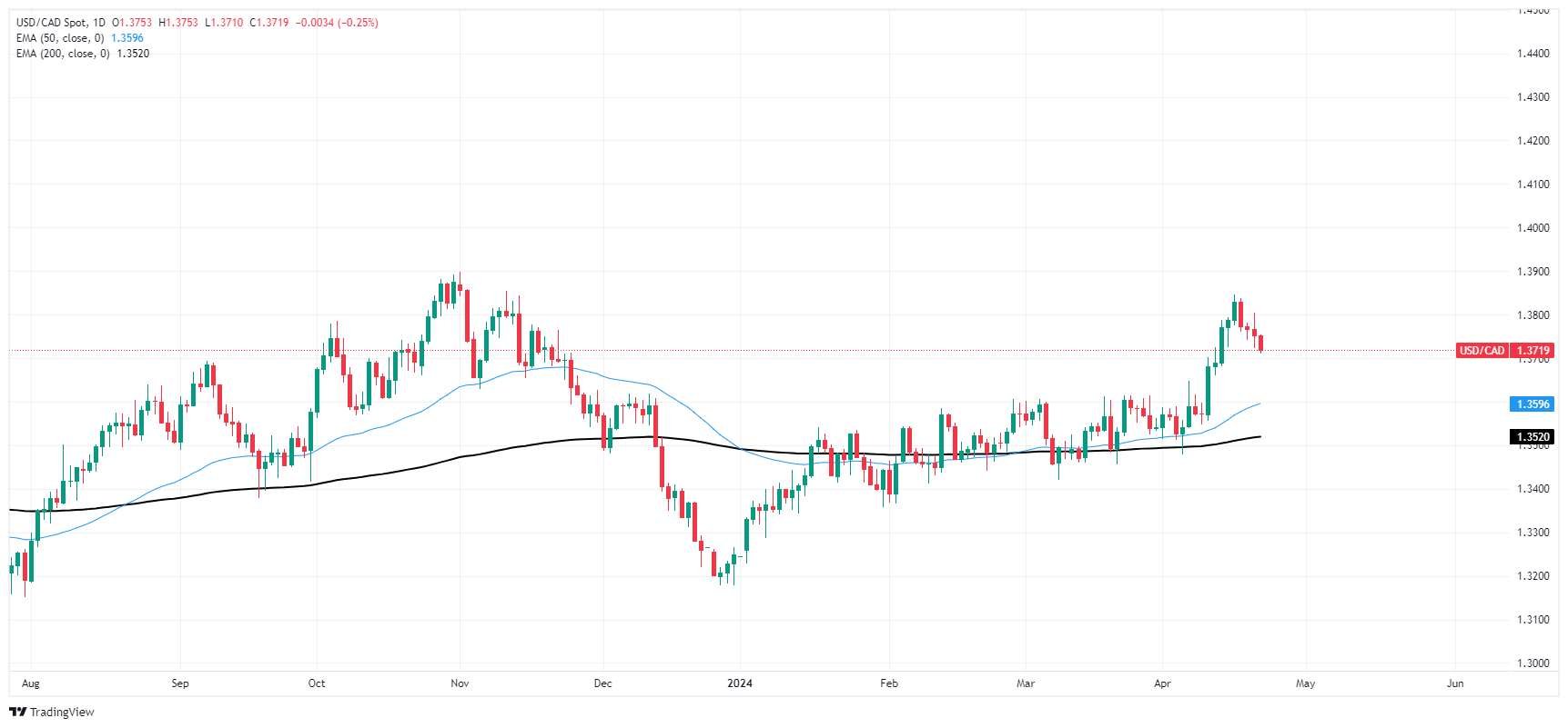 The USD/CAD pair fell from last week’s peak of 1.3840, and a bullish recovery attempt fell short after a bearish rejection from the 1.3800 handle. The pair is now targeting 1.3700, which will clear the way for a push toward a supply zone near 1.3550 as the Loonie leaks below technical support at the 200-hour Exponential Moving Average (EMA) near 1.3730.