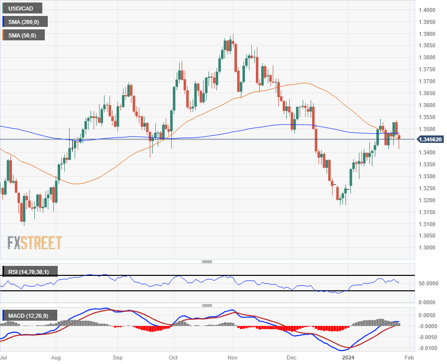 The USD/CAD’s near-term decline from the week’s peak near 1.3530 saw the pair slide around 0.9% peak-to-trough, and the pair is now recovering toward the 200-hour Simple Moving Average (SMA) near 1.3480. On the top end, an intraday technical resistance zone is priced in around 1.3490.