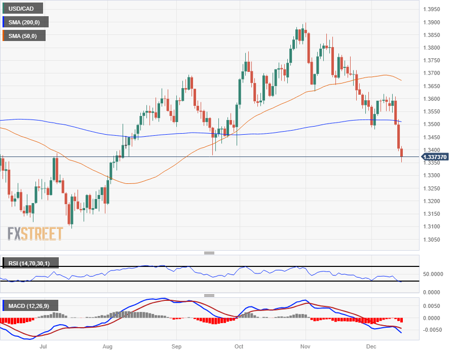 USD/CAD spent most of Friday drifting between 1.3400 and 1.3380 before settling down towards 1.3350, and the pair is down nearly two percent peak-to-trough from the week’s high bids near 1.3620.
