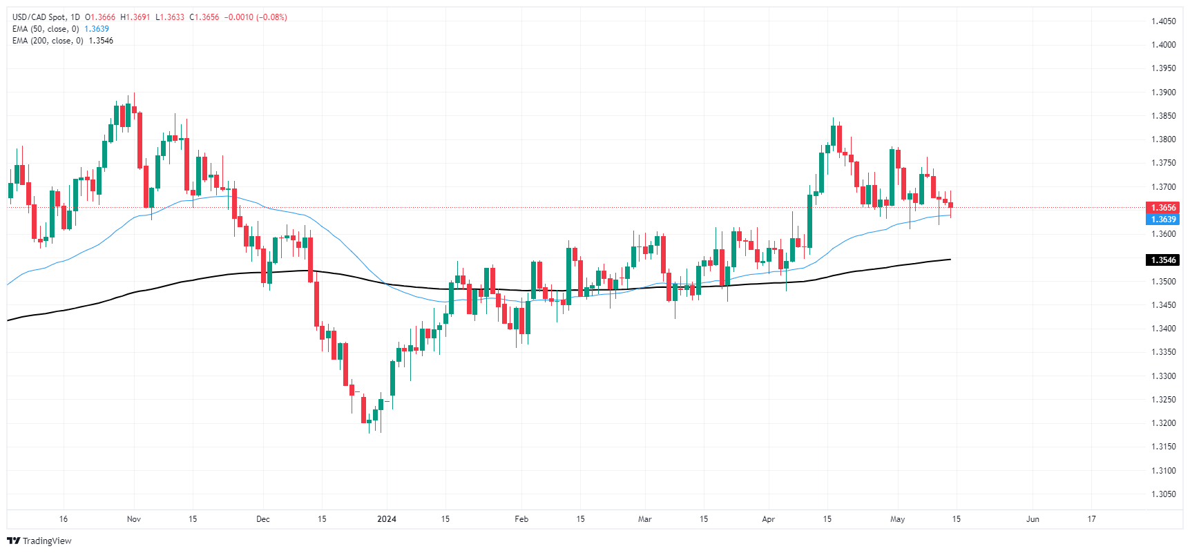 USD/CAD slid back into a familiar demand zone below 1.3660, but the pair is treading water in the near term. Bids continue to cycle near the 200-hour Exponential Moving Average (EMA) at 1.3691.